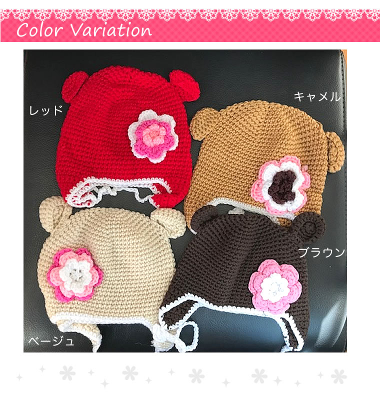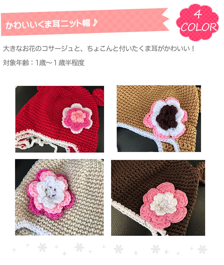 セール品・お買い得品・激安・安くてお得な商品も多数!お花のコサージュとくま耳が付いたかわいいニット帽♪