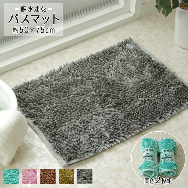 バスマット 速乾 吸水 滑り止めお得な吸水速乾バスマット 2枚組セット50×75cm 同色2枚ブルー、ピンク、ベージュ、グリーン、グレーモールタイプ 乾きやすい タオル地 シンプル おしゃれ カラフル【3476080】吸水撥水ミスト2枚組