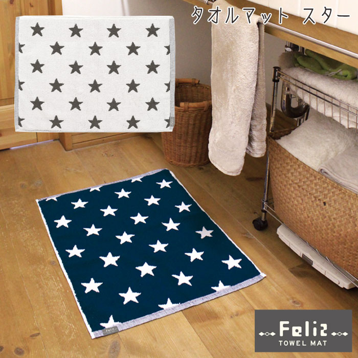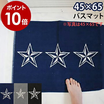 バスマット おしゃれ 足ふきマット 足拭きマット 45×65cm 浴室マット 丸洗い可能 お風呂マット コットン タオル タオル地 ネイビー グレー 吸水 北欧 洗える インテリア シンプル 星柄 アメリカン【ポイント10倍】[ STAR BATH MAT スターバスマット 45×65 ]