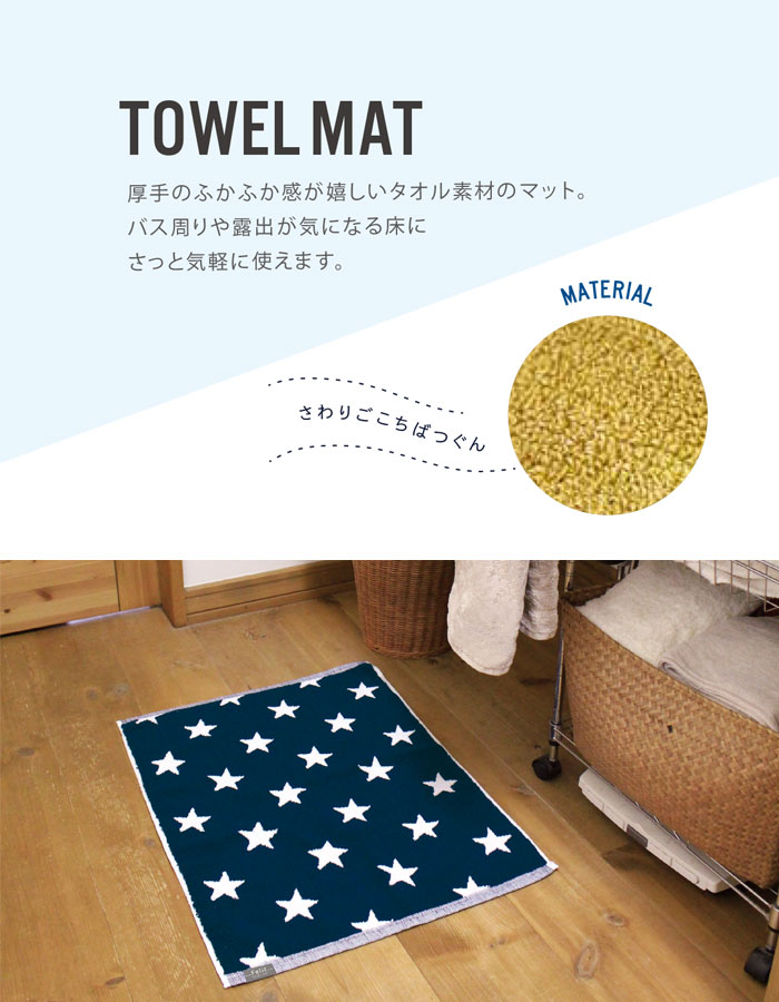 ●厚手のふかふか感がうれしいタオル素材のマットです。